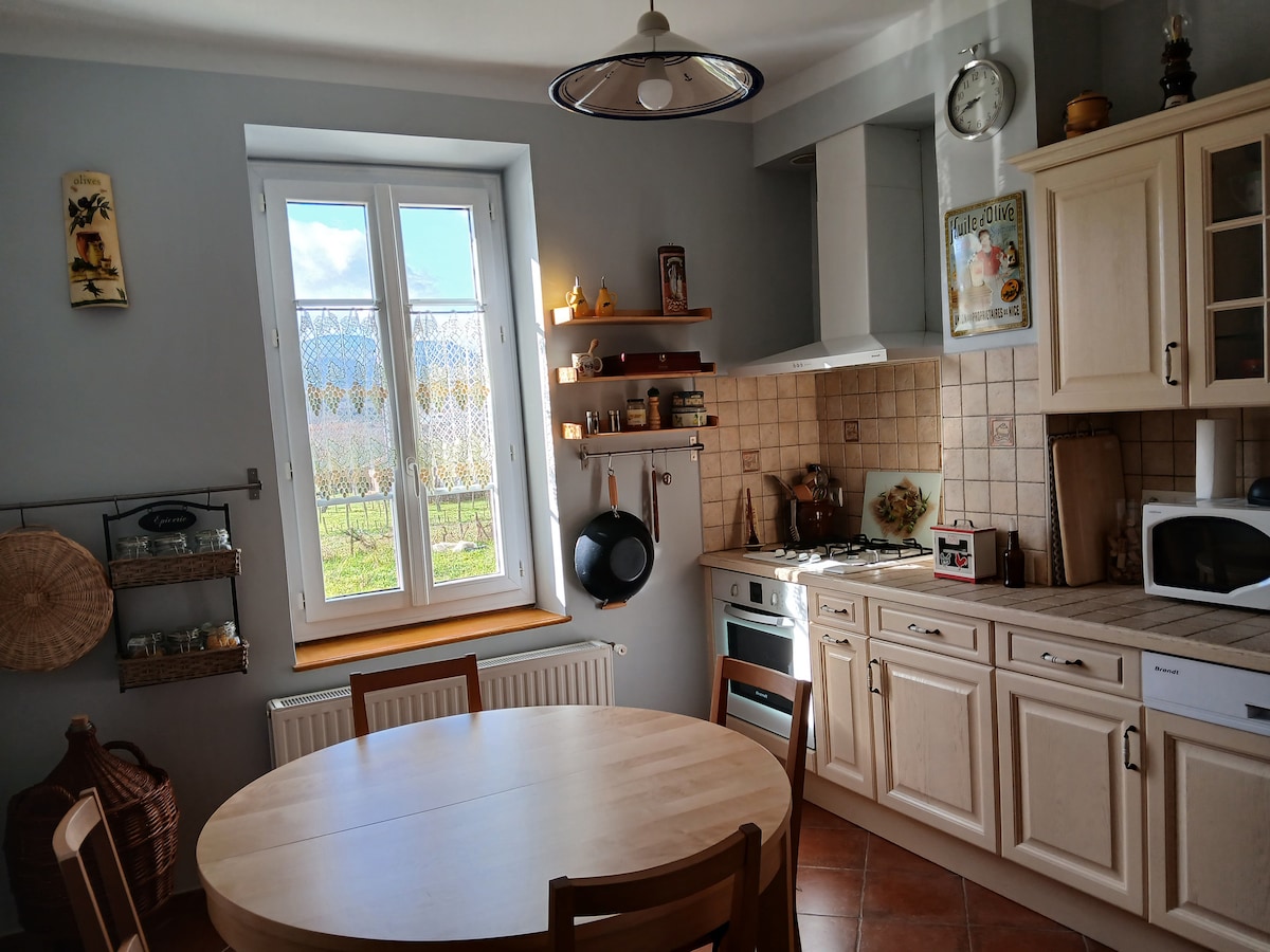 Vous aurez 3 chambres, une salle de bain rénovée, un WC, un grand salon, une cuisine rénovée ainsi qu'une entrée privée à votre disposition. Un agréable jardin dans lequel vous pourrez me croiser avec rivière en contre bas Vous pouvez me joindre tout au long du séjour car je vis à côté