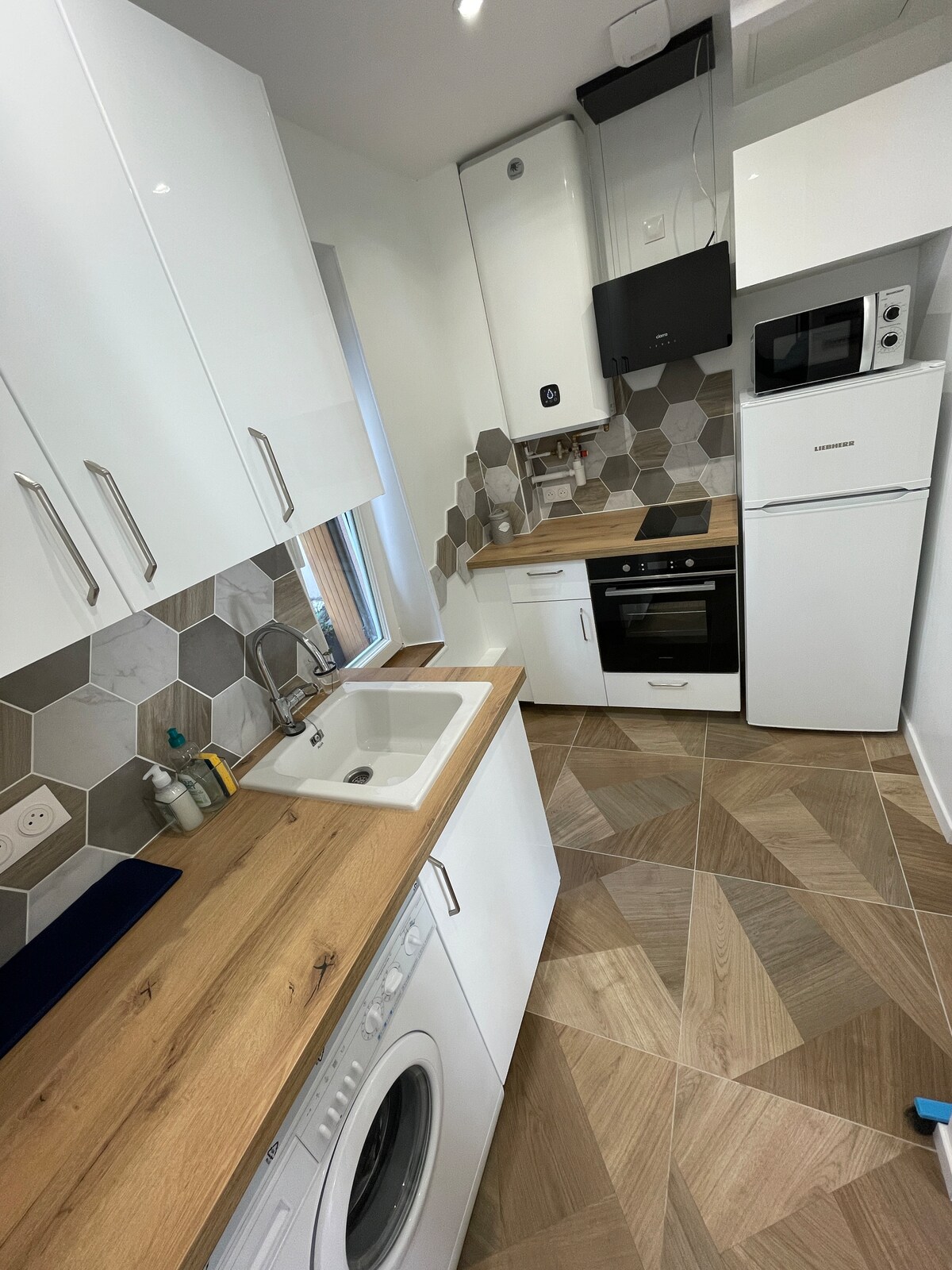 이시 중심부에 위치한 3룸 아파트로 리모델링을 마쳤으며 고품질의 재료와 마감재로 매우 잘 꾸며져 있습니다. 엘리베이터가 있는 안전한 건물 내 52m2 - 식사 공간이 있는 거실, 거실, TV - 최신식 고급 주방 시설 완비 - 옷장/수납장이 있는 침실 2개 (침대 1개 160cm 및 침대 1개 140cm x 200cm) - 샤워실이 있는 욕실과 화장실 이탈리아산 가구 및 독일산 욕실 및 가전 제품 심플하고 우아하며 공간이 잘 활용되었습니다. 장애인 접근 불가