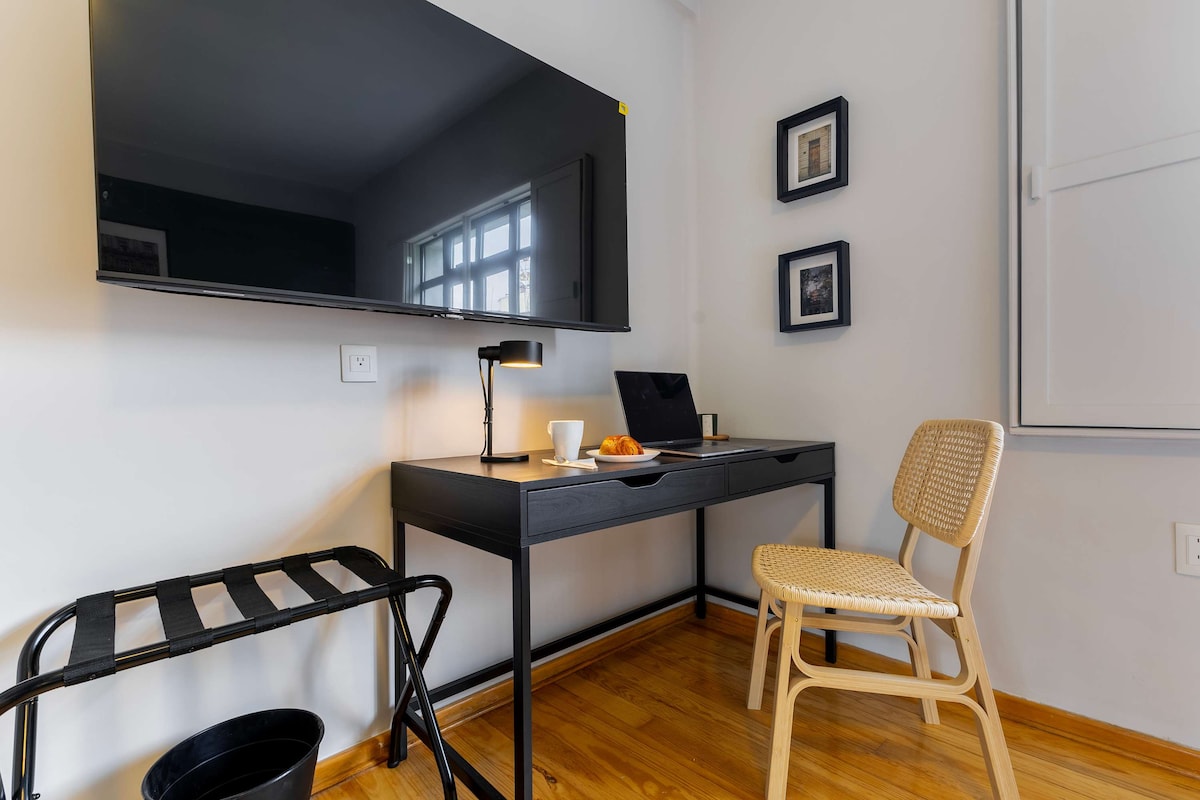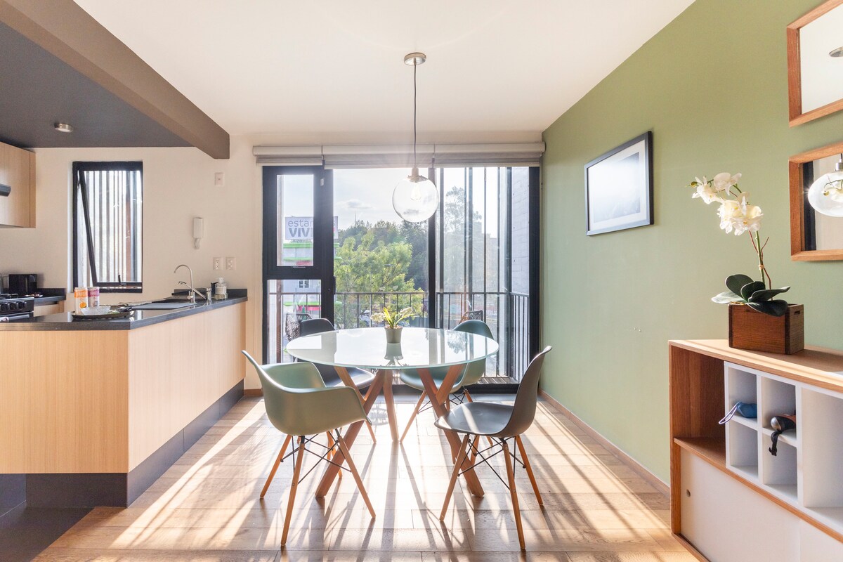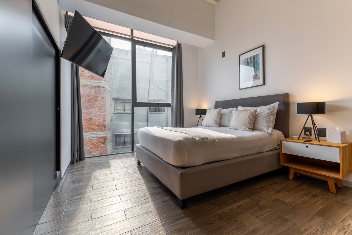 이 세련된 아파트는 브루클린의 감각과 CDMX의 매력, 빨간 벽돌, 검은 강철, 아늑한 디자인을 조화시킵니다. 편안한 킹사이즈 침대, 완비된 욕실, 완비된 주방, 스마트 TV를 즐기세요. 알바로 오브레곤 대로에서 몇 걸음 거리에 카페, 서점, 갤러리, 활기찬 나이트라이프가 있습니다. 로마 노르테의 중심부에 위치하고 있으며, 콘데사 및 레포르마에 쉽게 접근할 수 있습니다.