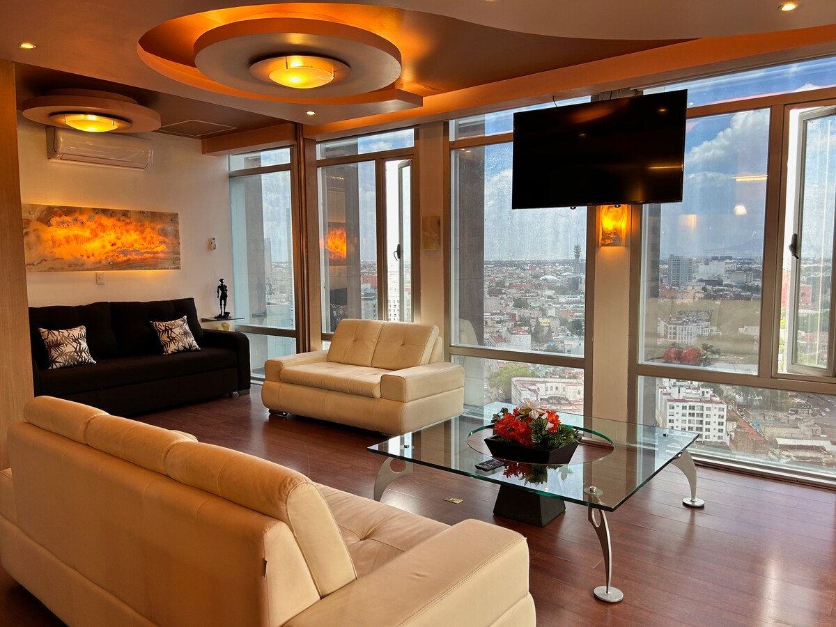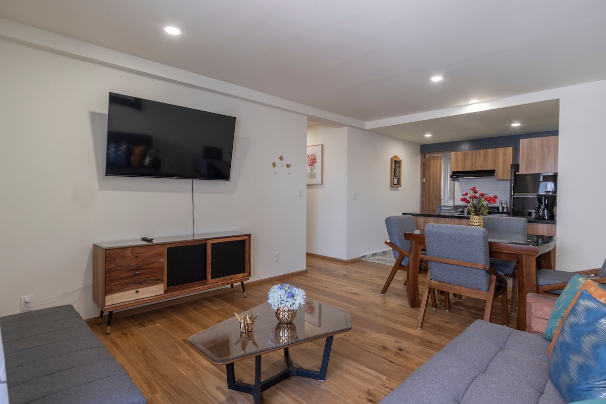 이 멋진 1베드룸 아파트를 즐겨보세요. * 숨 막히는 파노라마 전망 스카이라인 * 이색적인 공간 * 멕시코시티에서 가장 좋은 위치 * 매우 안전 + 레스토랑 많음 + 카페 + 상점 등 * 최고의 편의시설 * 로비의 연중무휴 컨시어지 * 매우 빠르고 매우 안정적인 와이파이 * 편안한 전용 업무 공간 * 완비된 주방 * 유럽식 메모리폼 매트리스가 있는 퀸사이즈 침대 * 세심한 배려와 매우 편안한 공간 * 식물이 가득 * 깨끗하고 소독됨 * 넓은 공간 * 마법이 가득한