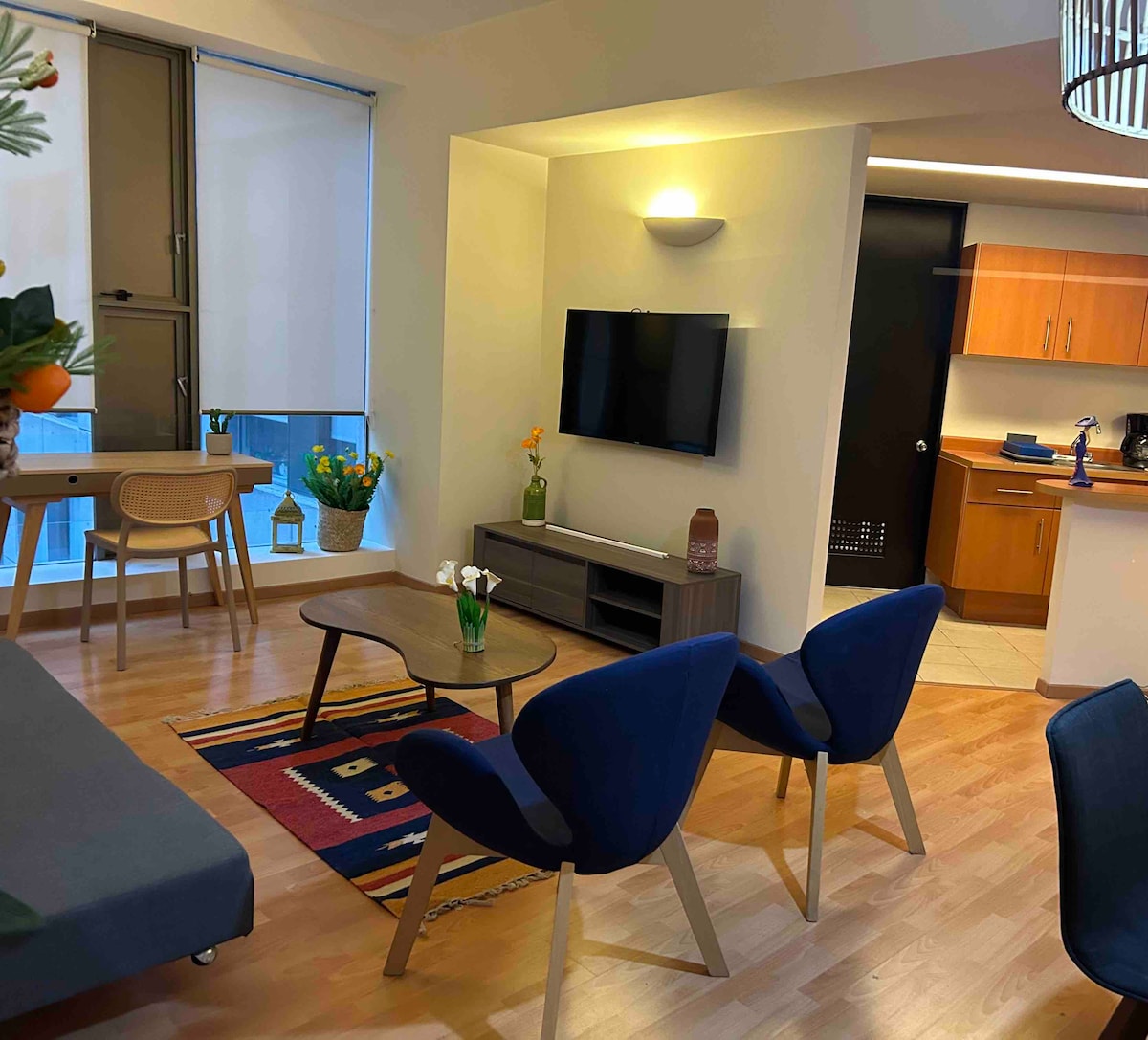 Loft de lujo entre Polanco y Palmas, ideal para una experiencia 5 estrellas. Cuenta con cama King Size, TV 75” con streaming, Wi-Fi de alta velocidad (100 Mbps) y una cocineta. Perfecto para viajeros que buscan confort y estilo. A pasos de tiendas de conveniencia 24h y una amplia variedad de restaurantes. Disfruta de la privacidad y comodidad de una suite premium, con todo lo que necesitas para una estancia inolvidable. ¡Te esperamos! Es perfecto tanto para viajes de negocios como de placer.