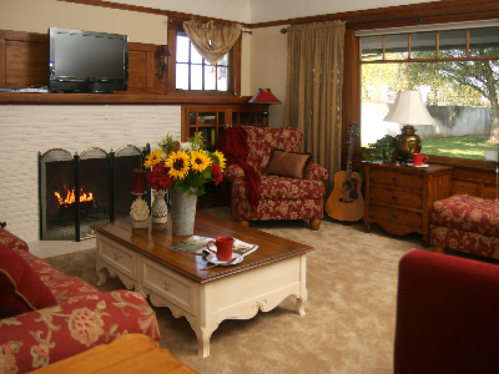 이 전원주택은 우아함과 매력이 넘칩니다. 새로운 앤틱 컨트리 스타일의 가구로 장식되어 있습니다. 가든 페어 코티지는 풍부한 자연광을 갖추고 있습니다. 거실에는 무쇠 난로가 있어 추운 밤에 와인 한 잔이나 뜨거운 코코아를 마시며 아늑하게 지낼 수 있습니다. 커다란 거실 창문을 통해 아름다운 이탈리아 분수와 함께 꽃으로 둘러싸인 매력적인 파티오를 볼 수 있습니다. 커다란 주방 창문을 통해 포도원 위로 빛나는 아침 햇살을 즐길 수 있습니다.