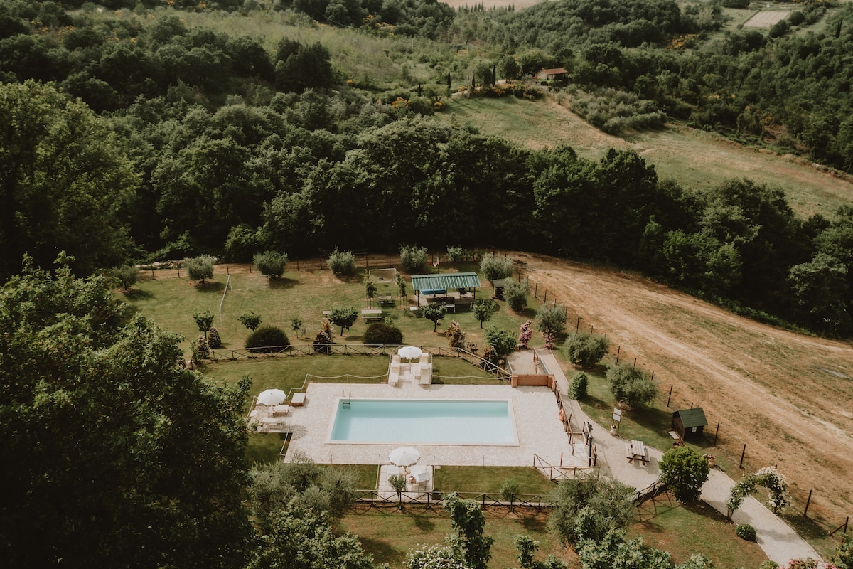 "IL PODERACCIO"는 트라시메노 호수를 둘러싼 언덕에 위치한 전형적인 석조 주택으로 아름다운 지중해 지역에 자리 잡고 있습니다. 건물은 두 층으로 이루어져 있습니다. 수영장과 정원이 전체를 둘러싸고 있습니다. 수영장 개장 시기는 5월 1일부터 10월 15일까지입니다. 코로나19 비상 사태에 따라 숙소의 청소 및 소독을 위해 관련 법률에서 제공하는 모든 지침이 채택되었음을 알려드립니다.