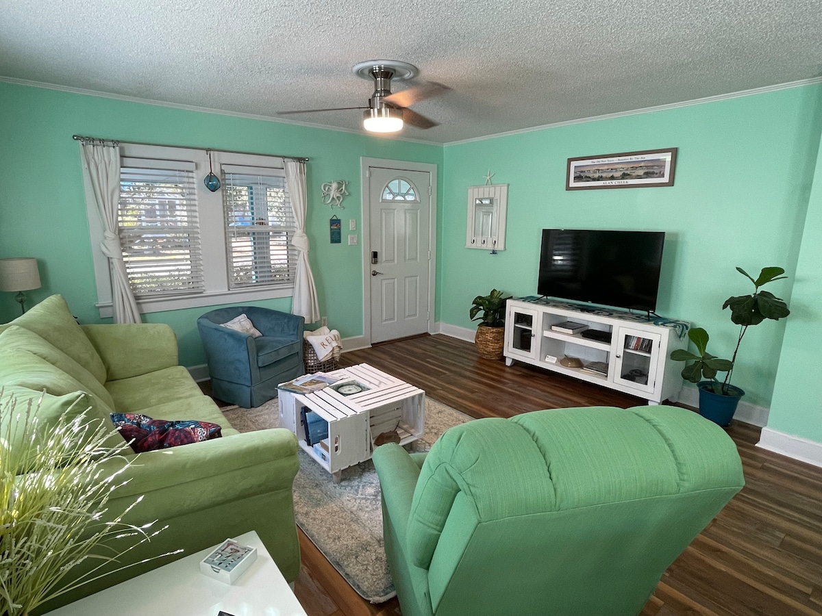 1940년대 해안가에 위치한 이 아름다운 전원주택의 베란다에 있는 300년 된 참나무 그늘에서 휴식을 취해보세요. 매력을 유지하면서도 원하는 편의시설을 모두 갖춘 이 아늑한 전원주택은 해변, 지역 관광지에서 몇 분 거리에 있으며, 모어헤드 시티 워터프론트 상점과 레스토랑까지 도보 또는 자전거로 쉽게 갈 수 있는 이상적인 위치에 있습니다. 저희는 반려견을 동반할 수 있습니다! 반려동물 수수료는 1박당 25달러로 별도로 청구됩니다. 예약 시 털이 많은 친구에 대해 알려주세요. *주 단위 숙박 시 할인