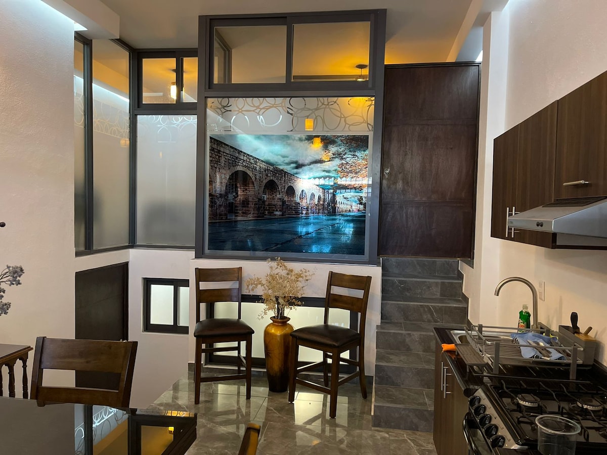 모렐리아 역사 지구에 위치한 고급 로프트. "카사 나탈리아"에 오신 것을 환영합니다. 모든 편의시설을 갖춘 이 멋진 고급 로프트를 즐기러 오세요. 킹사이즈 메모리 폼 침대에서 구름 위에서 잠을 자는 것처럼 잠을 잘 수 있습니다. 주방에는 필요한 모든 것이 준비되어 있습니다. 레인 샤워에는 항상 뜨거운 물이 있으며 TV는 케이블과 넷플릭스를 갖추고 있습니다. 필요한 경우 와이파이 6을 사용하여 홈 오피스를 할 수도 있습니다. 모렐리아의 마법 같은 역사 지구에 위치하고 있으며 대성당에서 불과 몇 블록 거리에 있습니다.