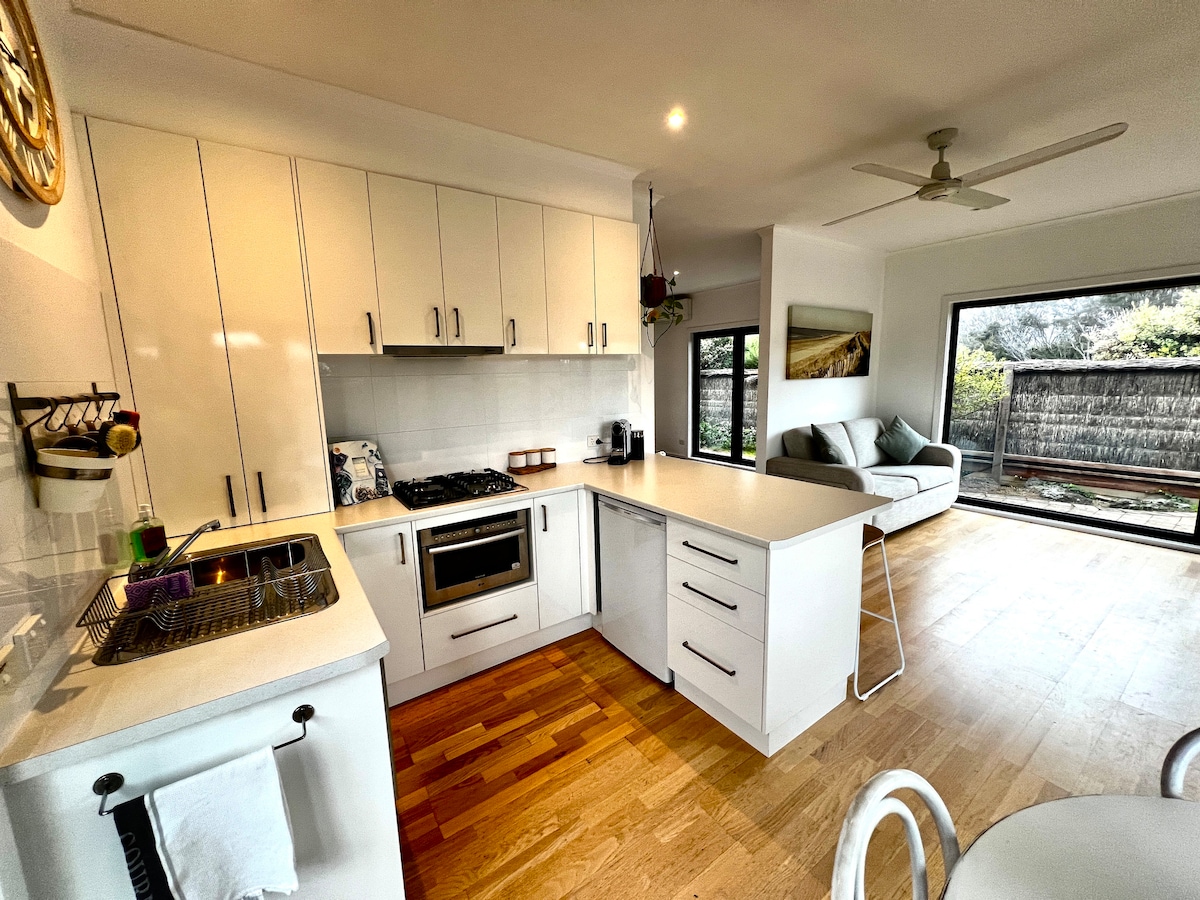 Our comfortable light filled home is fully equipped for your stay. 2 beautifully dressed queen bedrooms, and third with two double bunks (linen and towels provided) makes this house perfect for a family or 2! Also perfect for a couple or couple of couples 2 living areas, 2 large decks, one covered with BBQ, large yard for kids to explore with outside shower. Fully equiped kitchen, laundry, games and toys and complimentary use of coffee machine. Stroll to No 16 back beach, cafe, walking tracks.