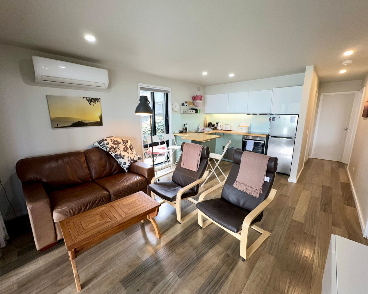 Forget your worries in this spacious & comfortable apartment. This one bedroom is ideal for a couple wanting to get away from the hustle and bustle of everyday life It features full kitchen including dishwasher and induction cooking A new queen size mattress Comfortable spacious lounge with TV Deck overlooking a peaceful tranquil environment All close to the Moonah links club house The hot springs and wineries are close by EV charging Type 2 available Shiatsu massage available by host