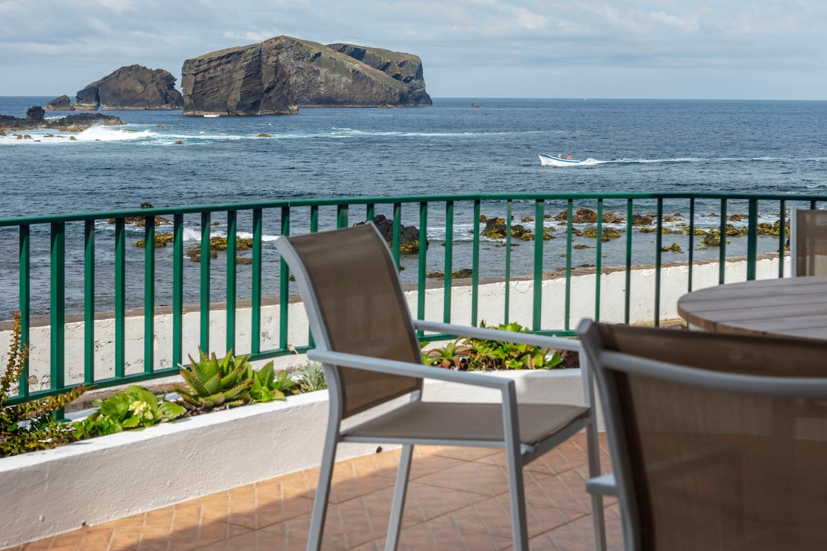 Casa Hortênsia sits right in front of the ocean, on the west coast of São Miguel, in Mosteiros – one of the island’s most beautiful villages. Just steps from the fishing port, the natural volcanic pools and the black-sand beach, it’s the perfect place to enjoy stunning sunsets, whale watching, ocean views and the calm sound of the sea. All rooms have AC and heating and fast Wi-Fi. We’ll provide everything you need for an amazing stay.