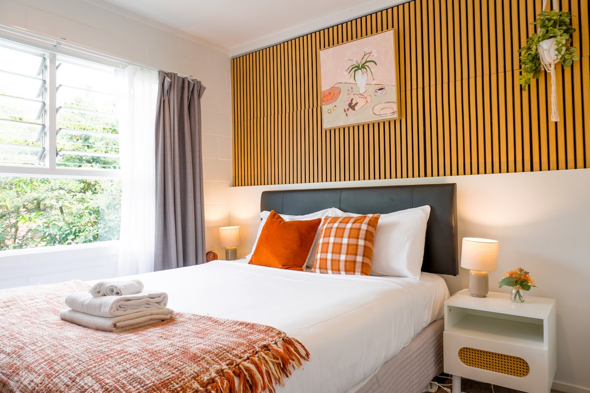 이 희귀한 86평방미터의 침실 1개/욕실 2개 도시 펜트하우스에서 넓은 발코니와 타의 추종을 불허하는 스카이 타워와 도시 전망을 즐기세요. 밝고 세련된 이곳은 오클랜드 최고의 레스토랑, 바, 상점, 극장까지 5분 거리에 있습니다. 4명이 편안하게 취침합니다. 공항버스가 숙소 바로 앞에 있습니다. ⚡한정 특가 — 4월 소유주 변경 전에 가격 인하(1박당 $179)! 추가 수수료 없이 낮은 청소비. 이 도시의 숨은 명소에 머물 수 있는 기회를 놓치지 마세요.
