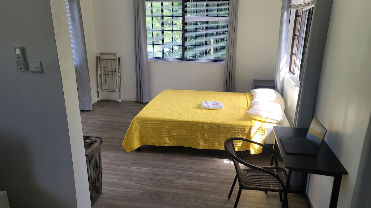 Located in a quiet residential area offering safety, a private entrance, and a breezy atmosphere. You are 8 to 15 mins drive from the town of St. George, beaches, malls, bars and restaurants. Bus routes, historical sites and supermarket just a short walk away! Perfect for solo travelers, nomads, couples, friends and small families. Approx Distance (via Taxi/Car): ๐ 8 mins to Capital & Port Louis ๐15 mins to Grand Anse ๐1 min to bus routes ๐1 min to supermarket, deli, and pharmacy.