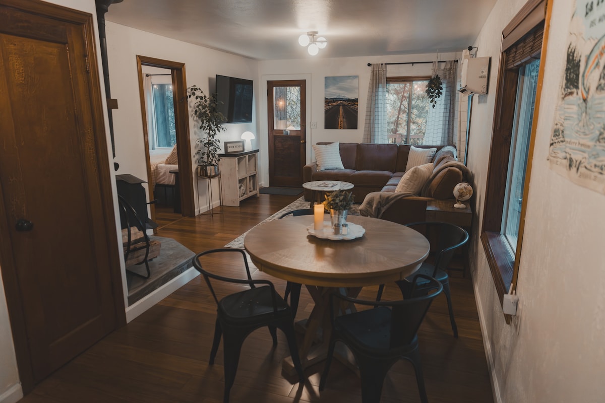 The Birch Tree Mountain Bungalow is a family retreat in the historic town of Dunsmuir, California – and your gateway to Shasta-Trinity National Forest. This bungalow from the 1920s is cozy at every turn, from our living room with a potbelly stove to a bedroom and sunroom that feel like home. Unwind among poufs and pillows in the sunroom or head out back where our garden yard awaits you. Eat in the sunshine here, and talk all night under the country stars.
