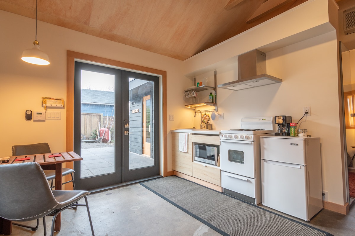 저희 게스트하우스는 야외 통로로 접근할 수 있는 완전한 전용 공간이며 야외 파티오가 있습니다. 빛이 가득하고 아늑하면서도 넓은 느낌을 주는 공간으로 작은 공간에 많은 것을 담을 수 있도록 설계했습니다. 아치형 천장, 천장형 선풍기, 완비된 주방, 욕실, 편안한 퀸사이즈 매트리스와 부드러운 침구가 있는 침대 공간, 다양한 손길. 335평방피트의 게스트하우스에는 포틀랜드에서 머무는 동안 필요한 모든 것이 갖춰져 있습니다.