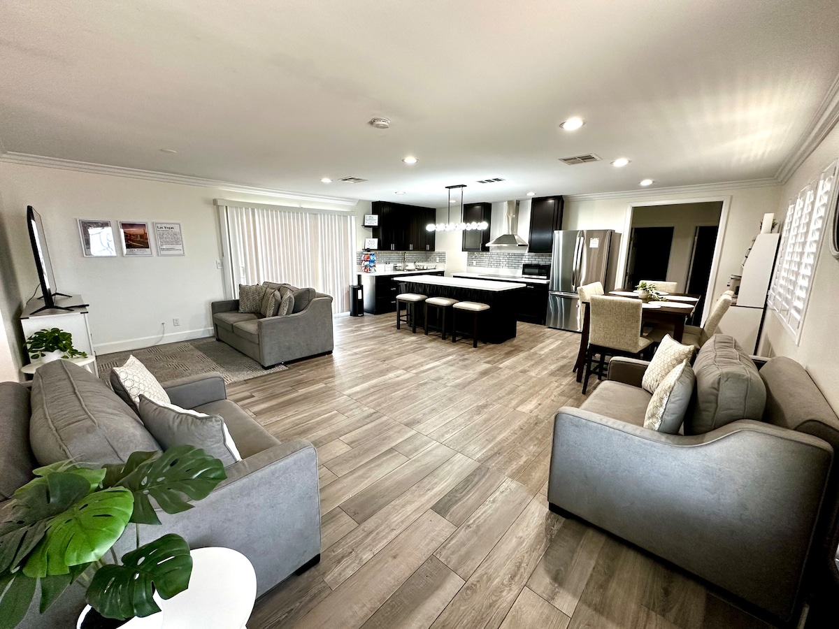 1900평방피트 주택을 완전히 리모델링한 현대식 주택에 오신 것을 환영합니다!. 농구 코트, 골프 퍼팅 그린, 스트립 전망을 감상할 수 있는 데크. 가라앉은 구덩이 좌석 공간. 이 집은 2019년에 지어졌으며 2022년까지 아무도 거주하지 않았습니다. 뒷마당과 집에서 바라보는 전망이 놀라울 정도로 아름답습니다. 매우 넓고 최대 8명까지 편안하게 숙박할 수 있습니다. 25피트 난방이 가능한 수영장과 자쿠지. 초고속 인터넷 및 기본 케이블 구독. 각 침실에는 자체 스마트 TV가 구비되어 있고, 거실에는 거대한 스마트 TV가 구비되어 있습니다.