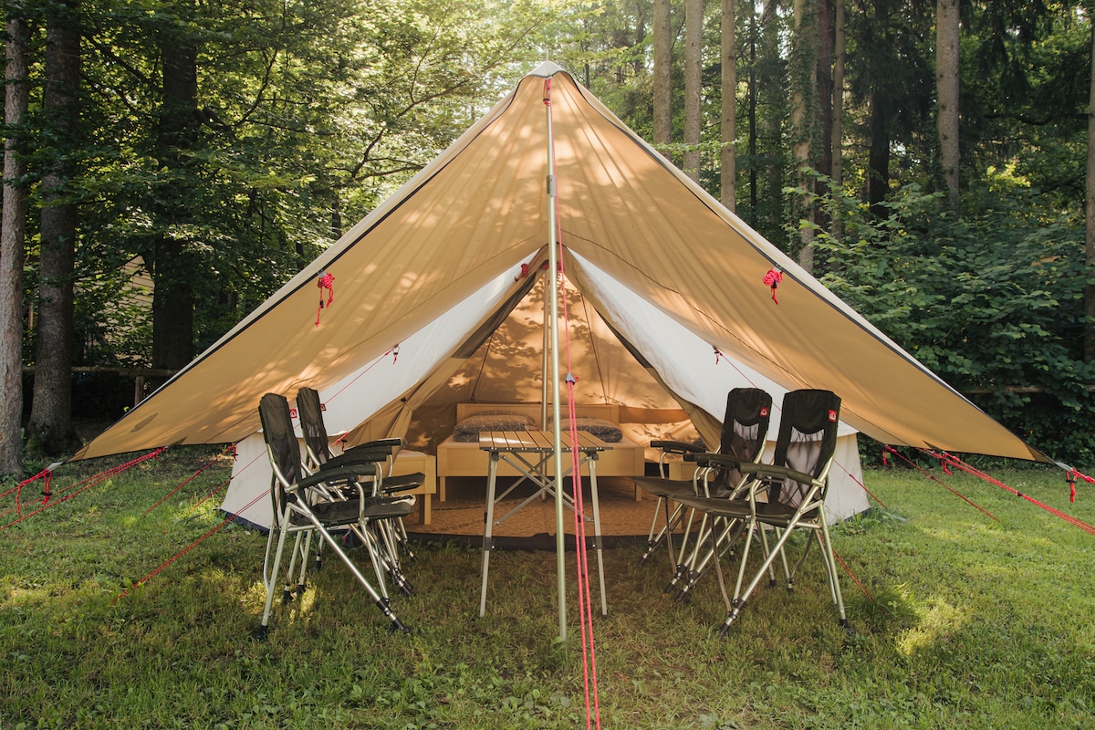 Family BELL rental equipped tent / Forest Camping