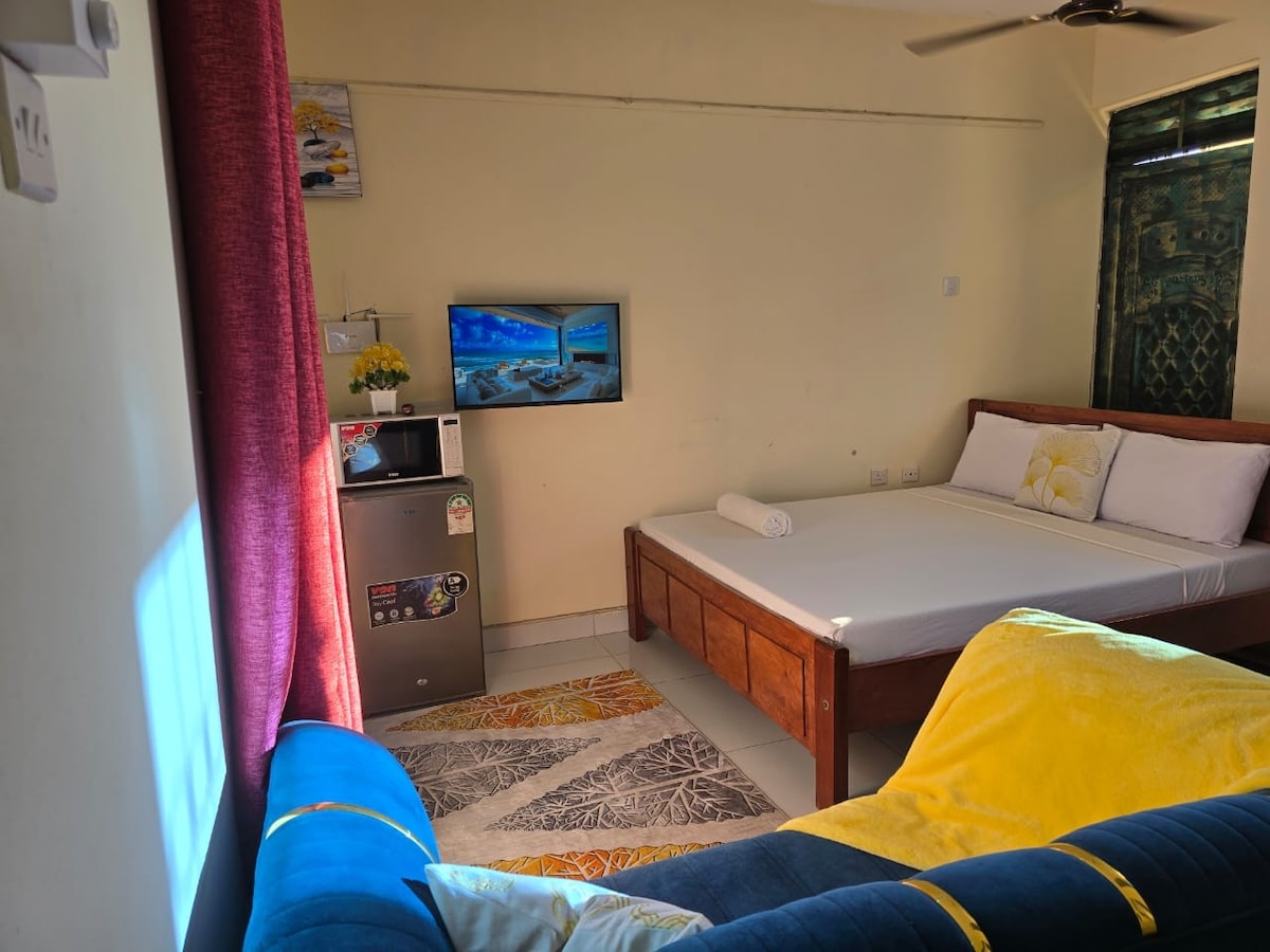 Our 1-bedroom house located in the peaceful and secure Mtambo Fisheries Estate in Bamburi.Perfectly designed for both relaxation and productivity, the space features high-speed internet and a dedicated working area,making it ideal for remote workers, business travelers or anyone seeking a quiet getaway by the coast. Situated just minutes from shops, public transport,recreation spots,and Bamburi’s beautiful beaches,this home gives you access to convenience while offering privacy and tranquility.