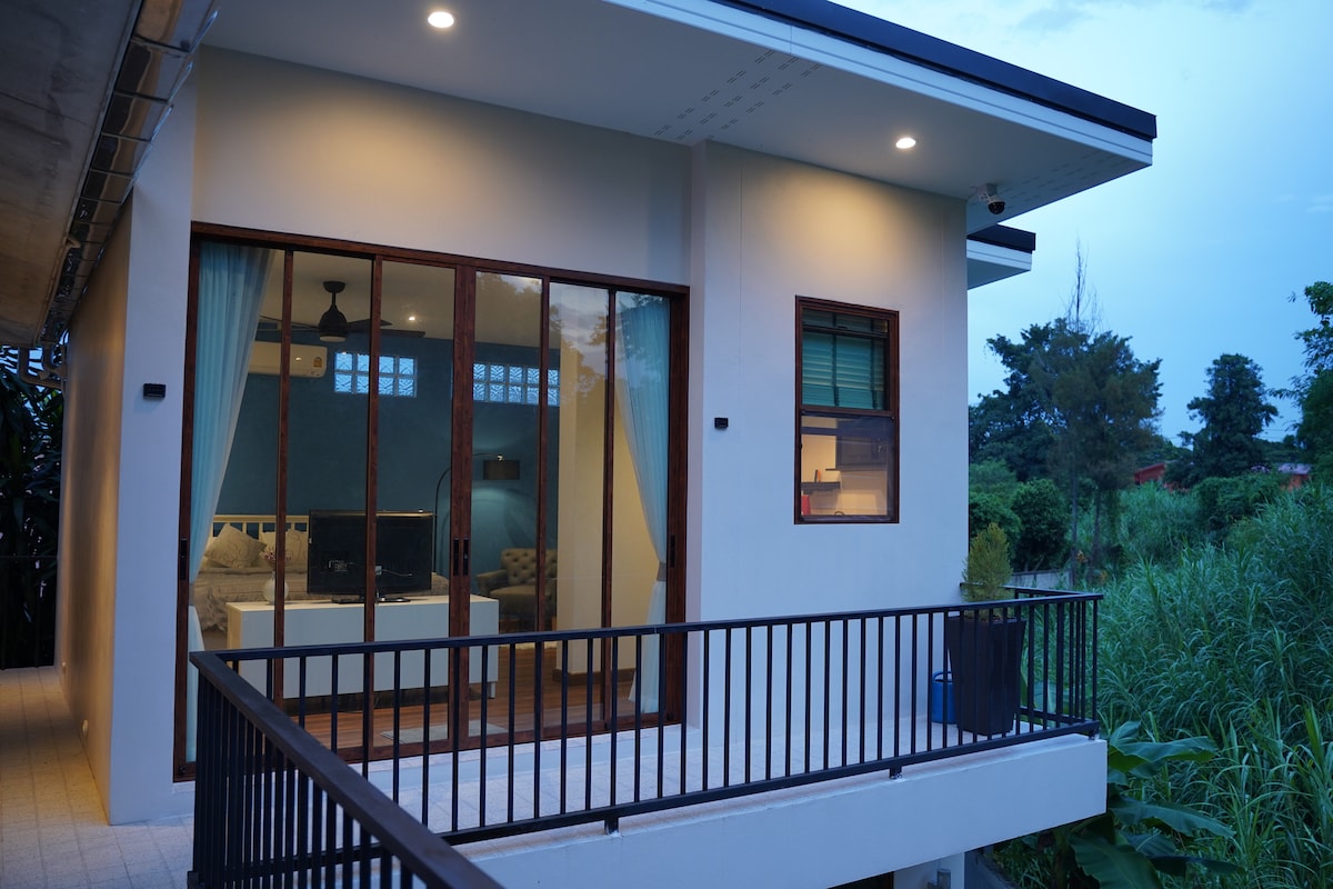 치앙마이 시내 근처의 게스트하우스 '블루 오브 네이처'에서 휴식을 취하세요. 평화로운 마을에 위치하고 2023년에 지어진 이 신선하고 현대적인 공간은 본관 뒤에 위치해 있으며 녹지로 둘러싸여 있습니다. 밝은 창문, 아늑한 킹사이즈 침대, 필수품이 구비된 작은 주방, 깨끗한 욕실이 있는 새로운 숙소입니다. TV, 에어컨, 초고속 인터넷 등의 편의시설을 즐겨보세요. 로열 파크 라자프룩 근처에 있습니다. 저희 셰프가 직접 만든 태국 요리를 유기농 허브와 함께 즐겨보세요.