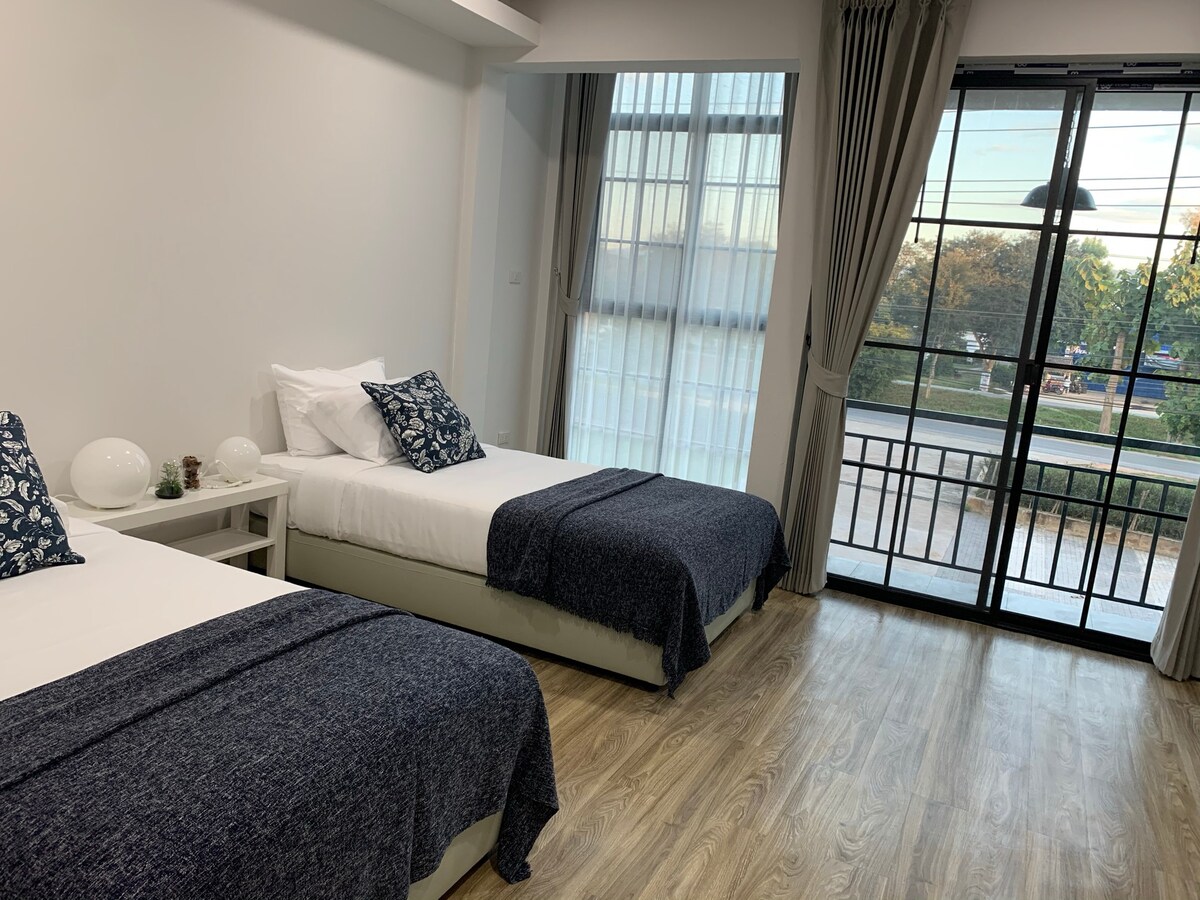 유명한 롱쿤 사원(화이트 템플)까지 도보로 1분 거리에 있는 넓고 현대적인 타운하우스입니다. 가족 휴가나 친구들과 함께 여행하기에 안성맞춤인 숙소입니다. 주차 공간이 넓어 차를 1대 이상 가져오실 수 있습니다. 최대 6명과 어린이 1~2명까지 편안하게 수용할 수 있습니다. (이 숙소 바로 옆에 다른 숙소가 있으므로 단체 인원이 6명을 초과하는 경우 다른 숙소를 예약하고 최대 12명까지 숙박할 수 있습니다.)