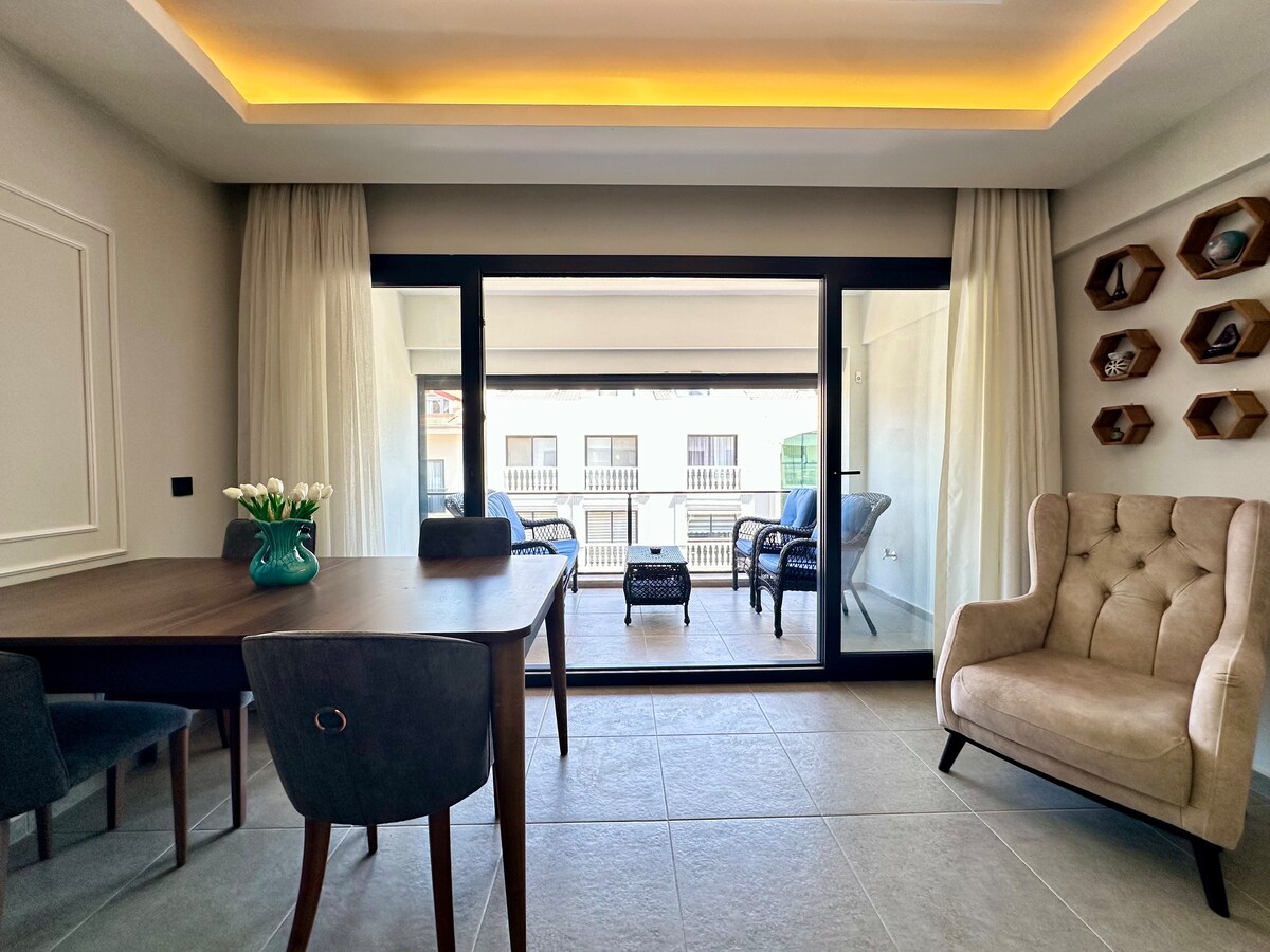 Our flat is located in downtown Fethiye just 50 mt away from the promenade. It's balcony's has the panaromic view of the Fethiye Bay. It is ideally next to the restaurants, cafes, bars, yacht harbour that are located on the coastline and in the downtown where you can enjoy the various delicious meals, live music, night life and the nice stroll though the promenade. It is 15 km and 5 km away from the world famous Oludeniz and Calıs beaches. Other property is Kaya suite duplex.