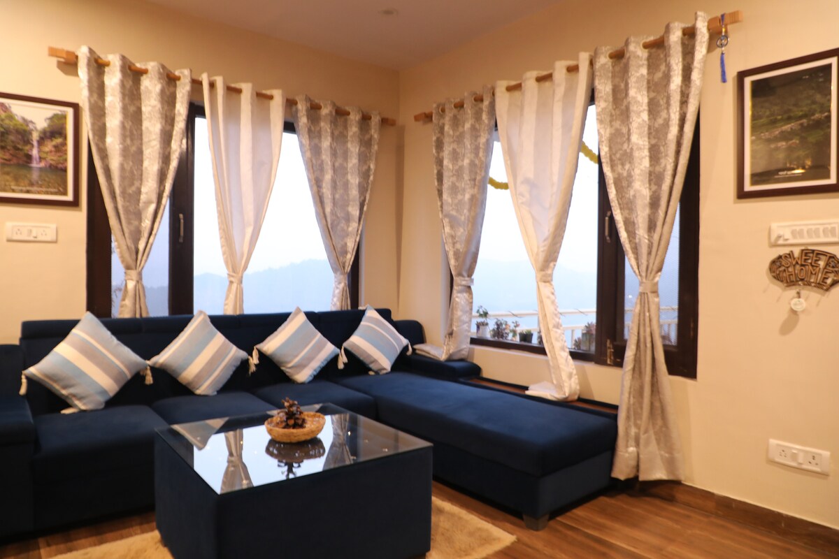 구름 속에서 깨어나는 듯한 느낌 – 180도 히말라야 파노라마를 감상할 수 있는 프라이빗 휴양지. 발코니에서 편안하게 사과를 따보세요. 무크테슈와르의 고요한 언덕에 자리한 아름다운 샤스바니 마을에 위치한 이 전용 전원주택에서는 위풍당당한 히말라야 산맥을 가까이서 감상할 수 있습니다. 일어나면 일곱 개의 언덕이 펼쳐지고, 눈 덮인 넌다데비, 트리슈르 등의 봉우리 너머로 해가 뜨고, 끝없이 펼쳐진 스카이라인이 펼쳐진다고 상상해보세요.