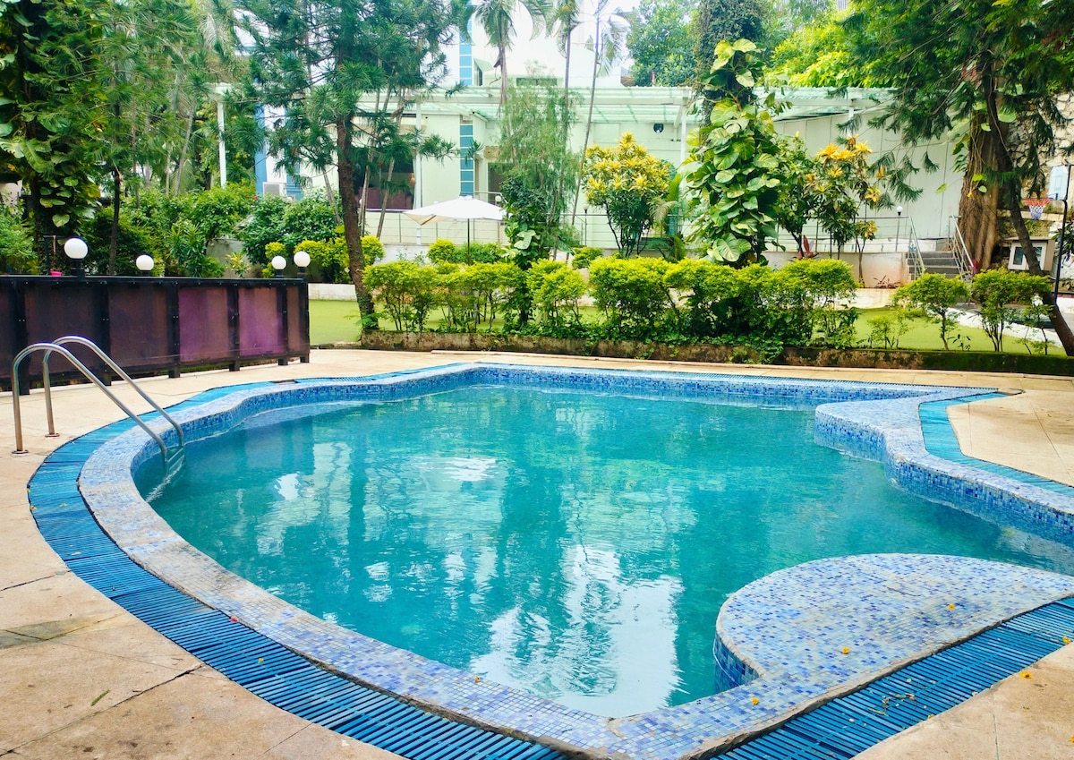 가족이나 단체 여행객에게 적합한 넓고 가구가 완비된 침실 4개의 서비스 아파트. 나나바티 병원 근처에 위치하고 있으며 산타크루즈 및 이르라 쇼핑 시장과 가깝습니다. 모든 침실과 거실에는 에어컨이 설치되어 있습니다. 시설이 완비된 주방과 거실에 풀사이즈 소파 겸 침대가 있습니다. 친절한 관리인이 매일 하우스키핑을 제공하여 깨끗하고 편안한 숙박을 보장합니다. 뭄바이 중심부에 위치한 진정한 집처럼 편리하고 편안한 숙소를 즐기세요.