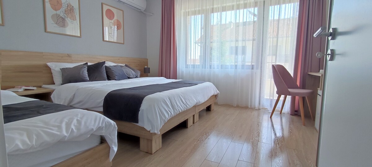 이 아름다운 아파트는 비톨라에서 가장 유명한 거리인 "시록 소카" 에 있습니다. 시록 소카에는 많은 상점, 바, 레스토랑, 극장, 도시 박물관이 있습니다. 커피를 마시며 발칸 반도에서 가장 오래된 건축물을 즐길 수 있습니다. 숙소에는 에어컨, 침실 1개, 욕실 1개, 거실 1개, 침구, 수건, 케이블 채널이 나오는 평면 TV, 무료 와이파이, 식사 공간, 시설이 완비된 주방, 발코니가 갖춰져 있습니다. 플로리나는 33km, 오흐리나는 52km 떨어져 있습니다