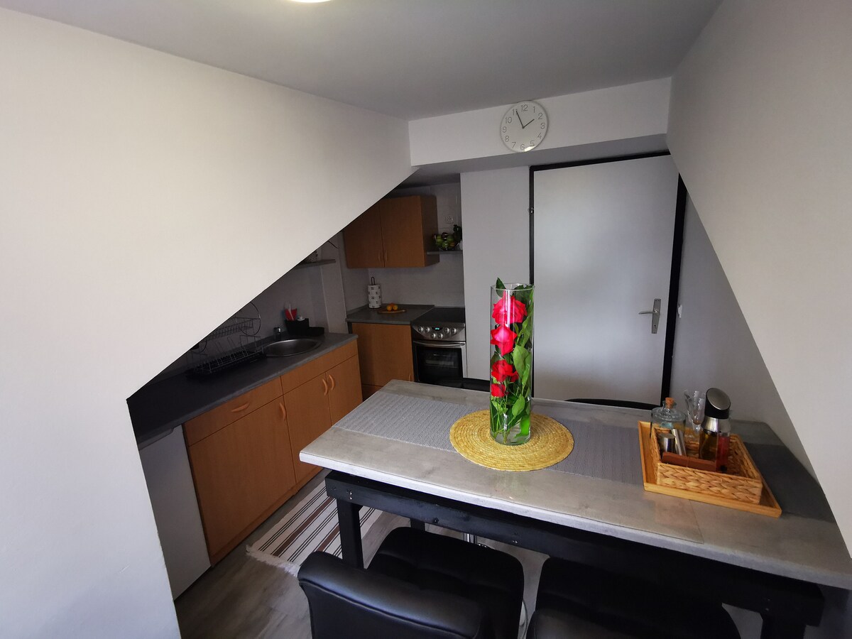 블레드 중심지에서 불과 1km 거리에 위치한 전용 출입구가 있는 평화로운 1층 스튜디오 아파트에 오신 것을 환영합니다. 녹지로 둘러싸인 아파트는 두 명이 머물기에 완벽합니다. 시설이 잘 갖춰진 주방(네, 커피 머신도 있습니다!)과 테이블과 의자가 있는 나만의 작은 테라스가 있습니다. 더욱 즐거운 숙박을 위해 주변의 아름다운 명소를 둘러보기에 완벽한 자전거를 무료로 제공합니다. 곧 뵙겠습니다!
