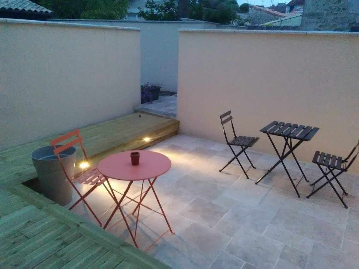 Décors et aménagements modernes dans cette maison de ville récemment rénovée, avec terrasse, située : - dans un quartier permettant de garer sa voiture et d'accéder aux commerces variés à pied; - à 50 mètres du musée de la bande dessinée et du fleuve Charente et de sa "coulée verte", pour des balades à pied ou à vélo; - proche du vieil Angoulême et de son quartier de restaurants et Halles commerçantes. L'appartement est équipé de la Fibre HD et d'un coin bureau vous permettant le télétravail !