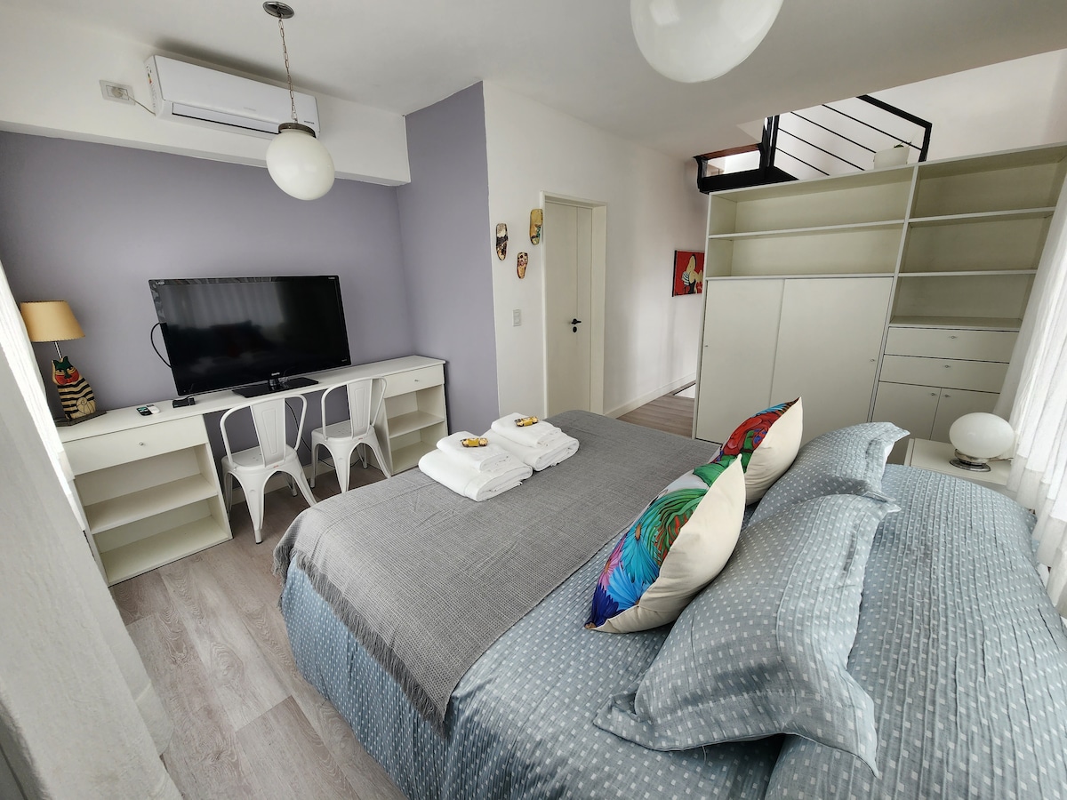 공중에 떠 있는 것 같은 나선형 계단을 올라가면 노출된 벽돌 메자닌 침실이 있습니다. 킹사이즈 침대는 지정 시 트윈 침대 2개로 설정할 수 있습니다. 아침이 되면 이중 높이의 천장과 고급스러운 아치형 창문이 태양의 오래 지속되는 포옹을 보장하며, 뉴욕 스타일의 욕실 타일도 똑같이 따뜻합니다. * 저희 로프트는 최대 4명까지 수용할 수 있지만, 2명은 바닥 매트리스를 사용하게 됩니다. 환영 선물로 커피 포드, 설탕/감미료, 생수를 준비했습니다. 이중 높이의 창문이 있는 저희 로프트는 아침 햇빛을 쬐며 하루 종일 매우 밝습니다. 요리를 좋아하기 때문에 주방 크기가 작지만 가스 오븐, 전자레인지, 냉장고, 접시, 식기류가 완비되어 있어 이 멋진 도시를 둘러본 후 맛있는 말벡 와인과 홈메이드 식사를 즐길 수 있습니다. (신선한 농산물이 많은 "메르카도 데 산 텔모"에서 2광장 떨어져 있습니다.) 나선형 계단으로 이동할 수 있는 중이층 침실에는 킹사이즈 침대로 쉽게 변환할 수 있는 트윈 사이즈 침대 2개와 2명의 게스트를 위한 추가 매트리스 2개가 있습니다. 욕실은 뉴욕 스타일의 타일, 샤워/욕조, 별도의 세면대로 완전히 리모델링되었습니다. 로프트 전체를 이용하실 수 있습니다. 저희는 시내에서 약 1시간 거리에 살고 있지만, 언제든지 연락 가능하며 정말 즐거운 숙박을 위해 어떤 방법으로든 기꺼이 조언하고 도와드리겠습니다. 산텔모는 부에노스아이레스에서 가장 오래되고 가장 전통적인 지역으로, 건축 유산과 자갈이 깔린 거리를 보존하고 있습니다. 요즘에는 바, 레스토랑, 주말 거리 시장, 많은 골동품 갤러리로 유명합니다. 19세기 건물과 매우 귀중한 디테일을 즐길 수 있도록 동네를 돌아다니는 것을 적극 추천합니다. 더 먼 거리의 경우 버스, 지하철, 택시 중에서 선택하실 수 있습니다. 추가 정보로, 레스토랑과 나이트라이프가 있는 푸에르토 마데로까지 도보로 이동할 수 있는 거리에 있으며, 콜로니아 델 우루과이로 향하는 당일 크루즈를 위한 콜로니아 익스프레스까지 도보로 이동할 수 있는 거리에 있습니다. 콜로니아 델 우루과이는 강력 추천합니다.