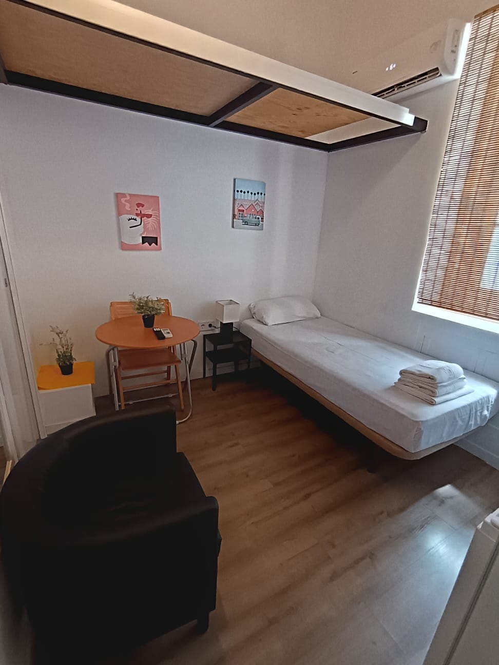 1층에 위치한 독립형 객실로 거리 수준의 외부 창문이 있습니다. 간이 주방과 전용 욕실이 있습니다. 이 공간은 공용이 아닙니다. 복도에는 출입구가 공용으로 마련되어 있습니다. 이 숙소는 관광객 임대용이 아닙니다. 업무, 교육 또는 여가 목적으로 임시로 임대됩니다. 교통이 편리한 지역에 위치하고 있으며, 슈퍼마켓, 레스토랑, 상점과 가깝습니다. 박물관, 엘부에네티로 공원, 아토차역, 203 공항 고속버스와 가깝습니다.