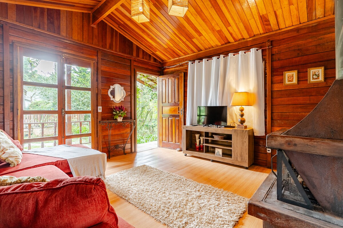 Chalé romântico, 5 min centro, ar cond e hidro.