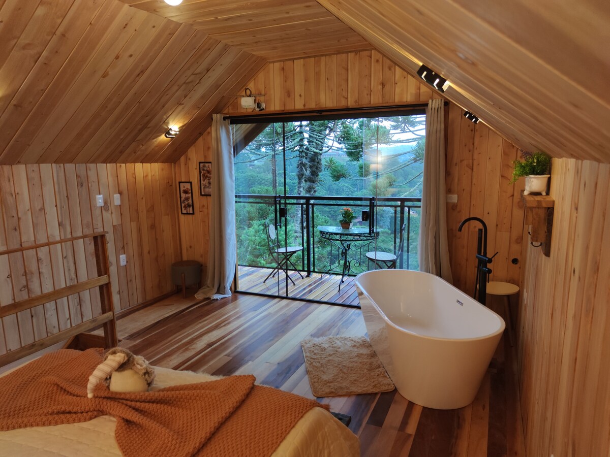 Charmosa Cabana A-frame c/ Hidro com Vista