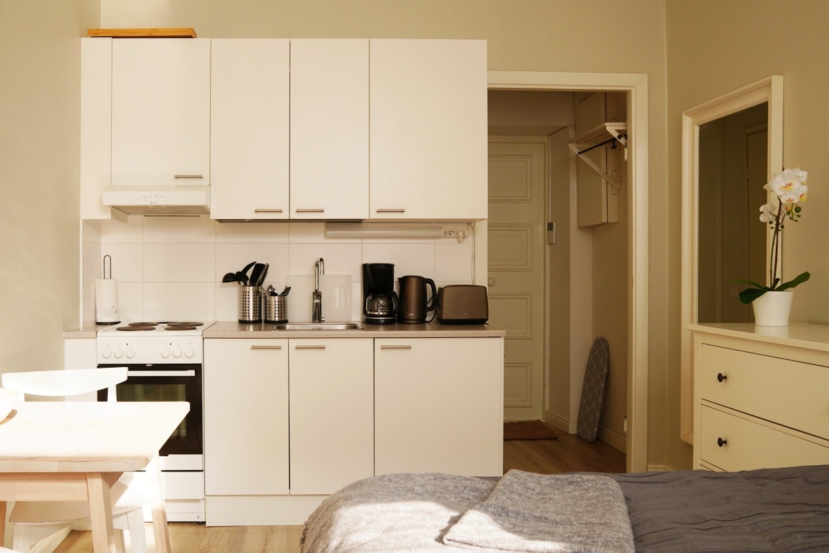 스칸디나비아 스타일의 가구가 완비된 스튜디오 아파트로 시설이 완비된 개방형 주방이 있습니다. 스칸디 아파트는 가벼운 디자인과 풍부한 자연 채광을 자랑합니다. 스칸디는 일상 생활에서 편안함과 편리함을 제공합니다. 시설이 완비된 주방, 세탁기, 초고속 와이파이, 연중무휴 지원, 정기적인 전문 청소 등 실용적인 시설과 스마트 TV 등 즐거운 시설을 이용하세요. 며칠, 몇 주, 몇 달 동안 원하는 기간 동안 편안하게 머물러보세요.