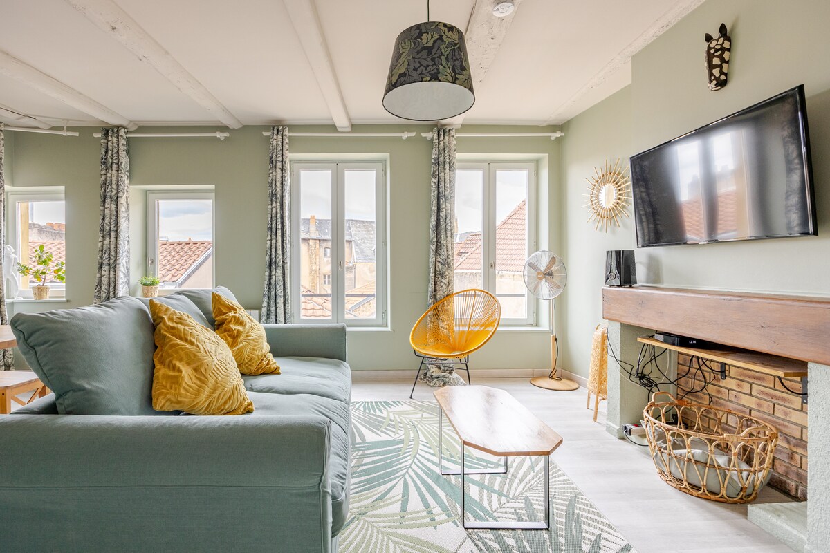 "ร SQUARE" : Un appartement spacieux (88 mยฒ), calme, lumineux, situรฉ dans un quartier piรฉtonnier, ร 7 minutes ร pieds du centre historique, idรฉal pour 1, 2, 3 ou 4 personnes + 1 bรฉbรฉ, il se compose de : 1 chambre avec un lit double, 1 chambre avec 2 lits simples, 1 dressing, 1 sรฉjour, 1 cuisine รฉquipรฉe, 1 piรจce bureau avec coin enfants, 1 salle de bains douche, 1 WC sรฉparรฉ, 1 balcon. Arrivรฉe autonome possible, option: parking fermรฉ en souterrain ร 100 m de la rรฉsidence : 3โฌ/jour.