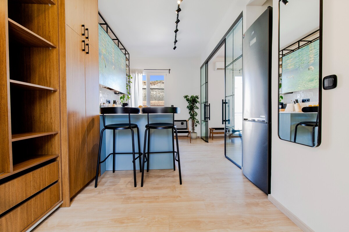 '비아조'는 코르푸 타운 역사 지구 전체에서 베네치아 시대의 저층 테라스 주택으로 현존하는 극소수의 숙소 중 하나입니다. 스피아나다 광장에서 몇 걸음 거리에 있는 아름다운 골목에 위치하고 있으며, 구시가지에서 제공하는 모든 것이 말 그대로 숙소 바로 앞에 있습니다. 퀄리티를 훼손하지 않고 현지인처럼 섬을 경험하고자 하는 방문객을 위한 고급스러우면서도 혁신적으로 복원된 여러 세대의 집입니다. 이 아파트는 1층에 위치해 있습니다.