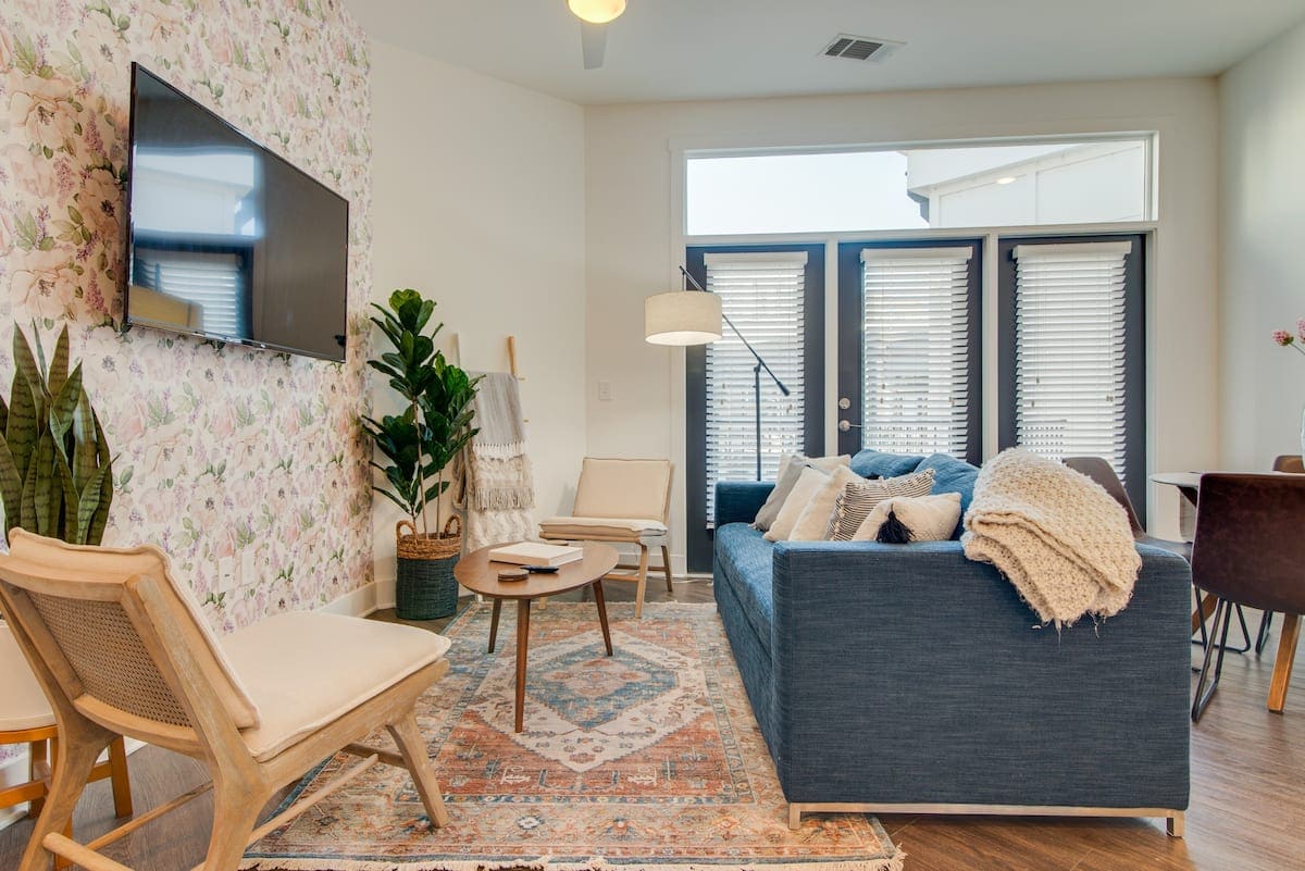This unique space has a style all its own. Located in the heart of downtown Nashville and a short walk from Broadway’s Honky Tonks, the location can’t be beat! • 3rd floor rooftop pool with luxury amenities and lounge • Secure onsite parking available, first vehicle free! • Modern gym, yoga, and cycling studio • Fully equipped and stocked kitchen • High-speed Wi-Fi • Stunning views of the city skyline • 5 min walk to Music City Center • 5 min drive to The Gulch and Nissan Stadium