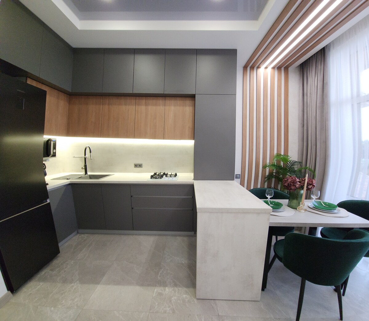 The house has a generator for elevators, water and heating according to a convenient schedule: 06:00-11:00, 13:00-15:00 и 18:00-23:00!! Exclusively for connoisseurs of style, quality, and comfort. A luxurious new apartment in a new building with expensive designer renovation, where every detail is imbued with an atmosphere of tranquility and harmony.