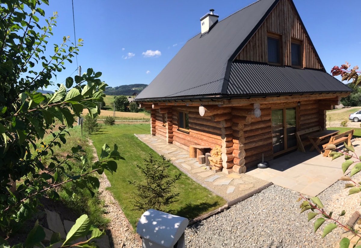 통나무가 있는 집 - Glade Słowikowa. 나무, 녹지, 새를 둘러싸면 이곳에서 특별한 기분을 느낄 수 있습니다. 아름다운 커다란 창문이 있어 넓은 느낌을 줍니다. 모든 것이 새롭고 집처럼 편안함을 느낄 수 있도록 설계되었습니다. 야외 온수 수영장, 에어로마시스와 조명이 있는 테라스의 온수 욕조/온수 욕조, 사우나, 선라운저와 파라솔이 있는 해변, 놀이터 등 독특하고 편안한 솔루션을 마련하여 편안함을 챙겼습니다.
