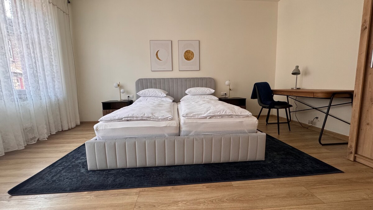 Sunny, comfortable apartment in the First District. Breathtaking 10th-floor view! Over 100m2 space (including 20m of terraces) - 2 private lockable bedrooms for sleeping and work, plus 2 more sleeping spots in the living room. Perfect for singles, couples, and business travelers with or without family. Excellent location near Spodek, NOSPR, and the Congress Center. Building features a convenience store, barber, Thai massage salon, Wine Taste by Kamecki.