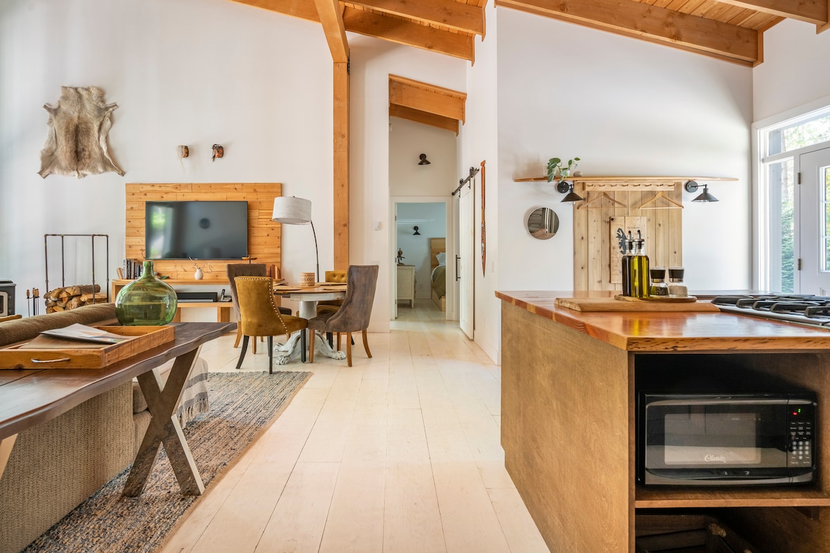 브리티시컬럼비아주 조던리버의 우드셰드는 높이 솟은 나무 사이에 자리 잡고 있어 고요한 휴식을 선사합니다. 깔끔한 라인, 천연 목재 마감재, 미니멀한 디자인이 울창한 해안 숲과 조화를 이루고 있습니다. 넓은 창문을 통해 들어오는 햇살과 상록수의 탁 트인 전망이 평온함과 자연과의 교감을 선사합니다. 차분함을 연상시키도록 설계된 이 공간은 따뜻함과 심플함이 조화를 이루고 있으며, 먼 바다 소리와 나무들의 속삭임 소리가 휴식과 성찰을 위한 완벽한 배경을 연출합니다.