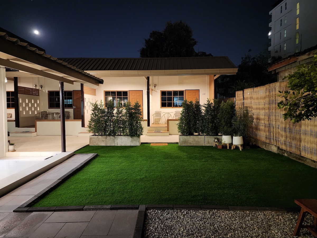 ผู้เข้าพักทั้งคณะจะไปไหนก็สะดวก ทำกิจกรรมอะไรก็ง่าย เพราะที่พักอยู่ใจกลางเมือง ใกล้ศูนย์การค้า ทะเล มีพื้นที่พักผ่อน สนามหญ้า หรือทำกับข้าว ปิ้งย่าง พื้นที่ส่วนกลาง