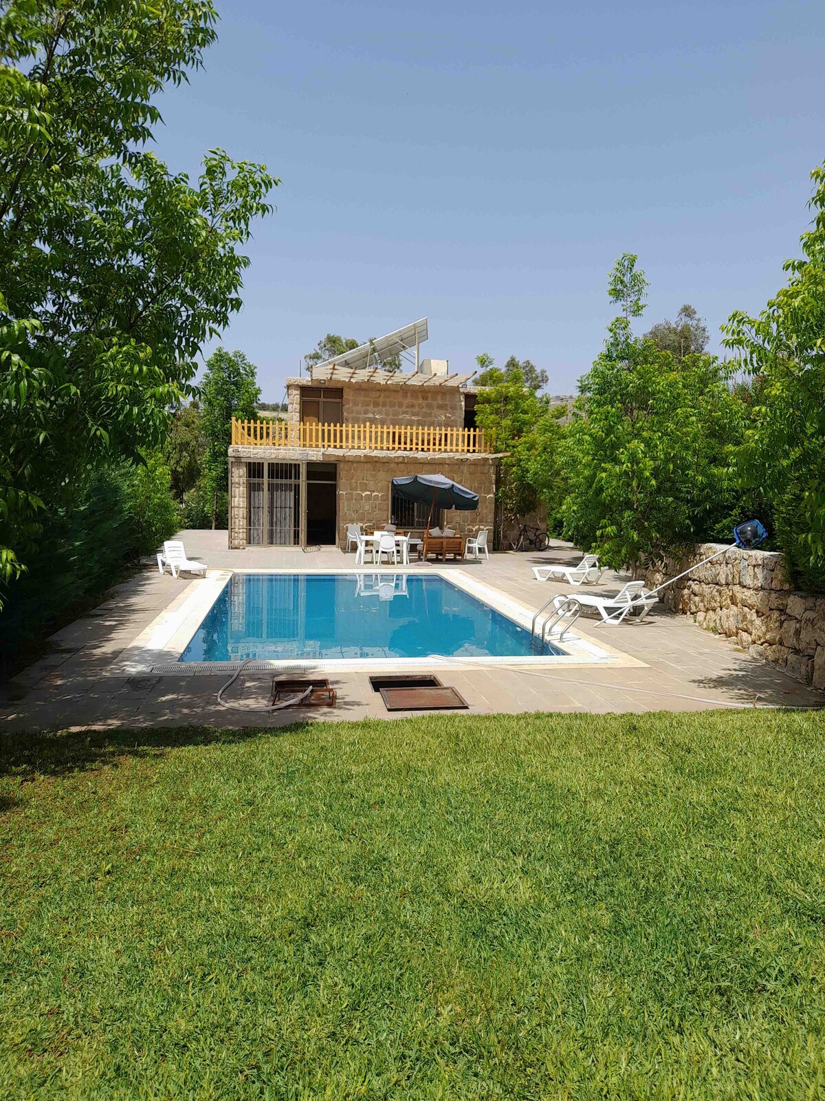 Experience our spacious, fully equipped villa designed to comfortably accommodate up to 25 sleeping guests. Enjoy 24/7 electricity,hot water, air conditioning, Wi-Fi, endless entertainment including speakers, board games, guitar, and Netflix. The villa features a complete kitchen with all utensils, appliances, and cleaning supplies, as well as clean, well-prepared bathrooms.Generous indoor and outdoor spaces, it is an ideal venue for weddings,big events, celebrations and unforgettable gatherings