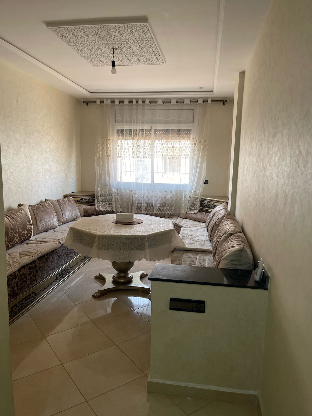 Appartement moderne et lumineux, parfait pour un séjour en famille . Il dispose de 2 chambres : une avec un lit double et une avec 2 lits simples, une cuisine équipée et un salon spacieux. Situé dans un quartier calme, il offre tout le confort nécessaire. Conformément à la loi marocaine, seuls les couples mariés sont acceptés. Vous bénéficierez également de la climatisation, du Wi-Fi et d’un espace propre et bien entretenu pour un séjour agréable.