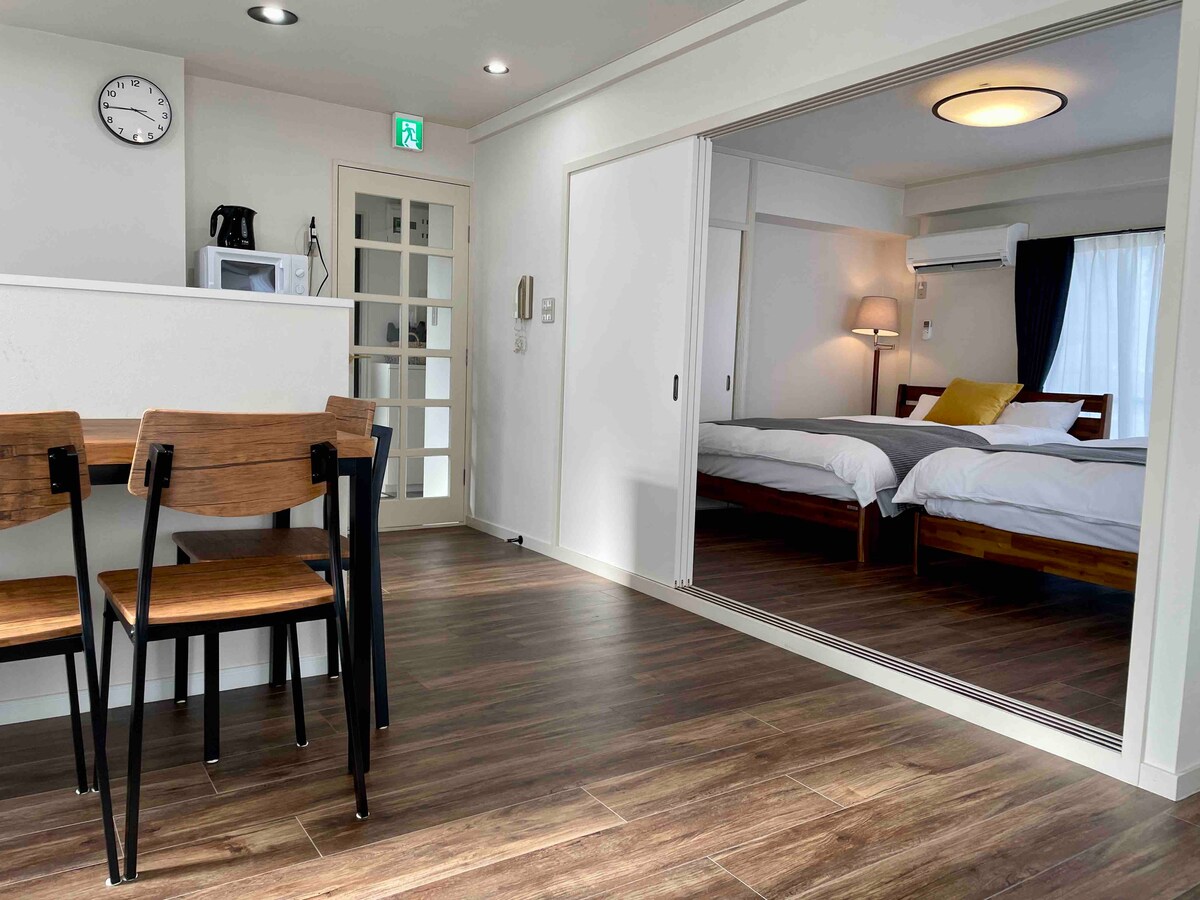 空港拠点に最適!清潔&家電完備でカップルやお一人でのご滞在向け。ちょっとおしゃれなでシック空間。