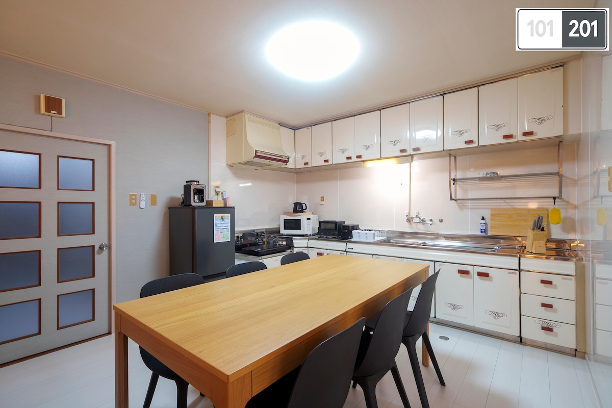 조용한 주택가에 있는 '해바라기 아파트'입니다. 코너 룸에 있는 가족형 객실이지만, 더블 침대 2개 외에도 소파 베드(더블 사이즈)가 완비되어 있어 최대 6명까지 편안하게 머물 수 있습니다.가족 또는 친구들에게 안성맞춤인 공간입니다. 객실은 현대적이고 차분한 분위기입니다.현지인처럼 살아보는 아늑함을 소중히 여깁니다.차량 여러 대를 위한 무료 주차장이 마련되어 있으니 차로 오시는 경우 안심하셔도 됩니다. 인기 관광지로의 접근성이 뛰어납니다.차로 30분 거리에 위스텐보스와 파르세아리조트(구주쿠시마)가 있어 관광하기에 편리한 위치입니다.조용한 동네에 있어 어린 자녀를 둔 가족이 안심할 수 있습니다. 현지 슈퍼마켓과 레스토랑도 차로 쉽게 갈 수 있으며, 장기 숙박에 적합합니다.관리자가 같은 건물에 거주하고 있어 안전하게 머무를 수 있습니다.현지인처럼 사세보에서 편안한 휴식을 즐기세요.방문을 기다리겠습니다.