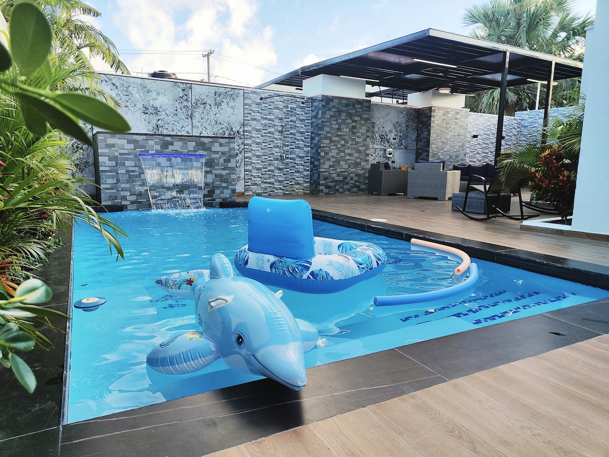 Alojamiento con un hermoso recorrido y único, a solo 5 minutos de las playas. Espacio para que disfrutes con los tuyos. Aire acondicionado en todas las habitaciones, 8 habitaciones 8 camas grandes queen 2 pequeñas twin, 1 sofa cama tamaño twin, área de recreación, billar, dominós, piscina, Jacuzzi, y mucho espacio. y lo mejor! puedes traer a tu mascota! Agradecidos por su elección! ✨️