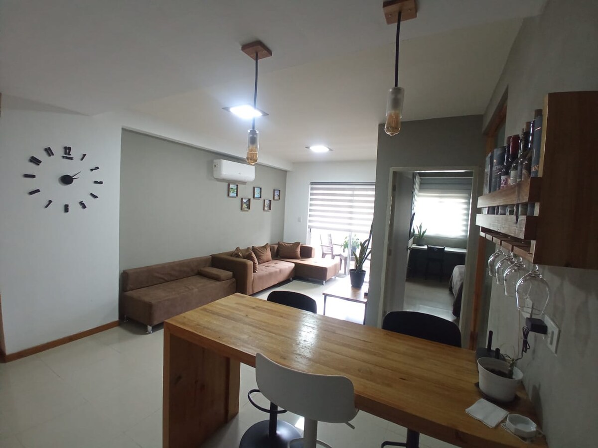 Disfruta de la sencillez de este alojamiento tranquilo y céntrico ubicado en la zona alta de mañongo que ofrece un clima de montaña, cerca del CC Sambil Valencia, kromi, farmatodo, Dunas, restaurantes, ademas tiene facil acceso a la autopista Valencia Puerto Cabello. El departamento cuenta con una habitación con aire acondicionado, TV Smar de 43", moderna cocina equipada, terraza, wifi de 50mg, agua caliente, lavadora, el conjunto posee piscina, agua 24horas, planta elec 50% y full seguridad.