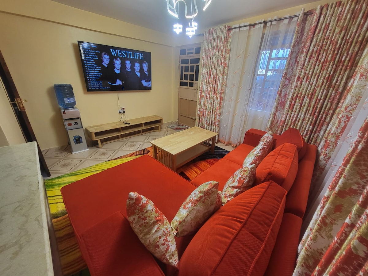 This is a Fully Furnished 2 bedroom Apartment located in Naivasha close to Buffallo mall Features ; 1. Secure location 2. Ample parking 3. Free WiFi 4. Smart TV 5. Washing machine 6. Hot shower 7. Fully equipped kitchen 8. Caretaker and Housekeeping available 9. Easily Accessible from the main road. 10. Nearby Eateries and entertainment facilities available 11. Close to major resorts; lemayian, Eserian & Astorian 12. Close to the shopping center