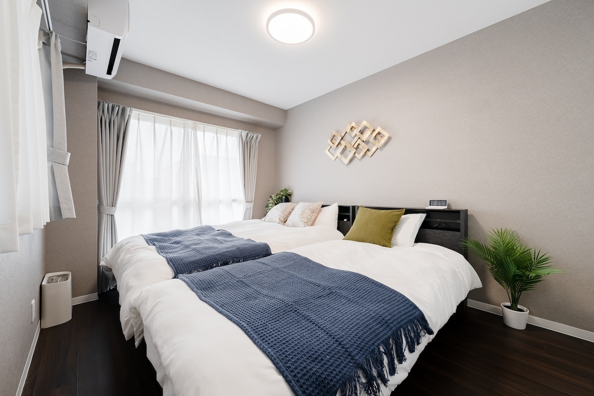 도보 3분 거리에 있는 역/4인/넓은 퀸사이즈 침대 및 소파
