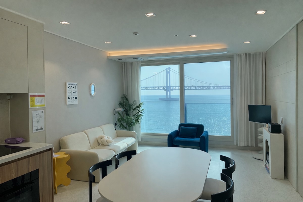 🌍 Airbnb Selected Global Top 1% 🔥🔥 초고층 광안리 파노라마 오션뷰 프리미엄 합법숙소✨ 🌈 신축+청결💯+친절🫶 숙소 문을 열자마자 모두들 탄성을🫢 가장 사랑받는 인기 1등, - 만족도 1등 숙소🥇 ✨️6인 침대 + 2인 푹신한 토퍼 이불 / 7인 가능 우정여행, 가족여행에 최적화된 5점 만점 숙소♥️ 🏆 수많은 후기에서 증명된 광안리 대표 숙소, - 만족도 최상위 클래스💗 🙇🏻♀️ 호스트가 직접 깨끗하게 관리하며 모든 편의 봐드려요🫶 후기 만점! 믿고 예약하세요🤍 ✍🏻 5성호텔급 청결 룸컨디션, 에머니티 제공 🏷️ 불꽃축제, 일출을 숙소 거실 및 침실에서 관람 ✍🏻 핫플 🔥 밀락더마켓 바로 옆 도보 30초 🏷️ 건물 1,2층 카페, 편의점, 포토샵, 맛집 입점 ✍🏻광안리 해수욕장, 회센터 바로 옆 🏷️ 넷플릭스, 유튜브 등 초대형 빔 설치 ✍🏻지하 3층까지 무료주차 (타워X)