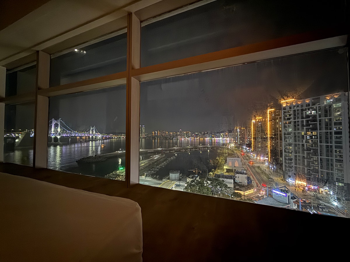 부산 해운대에 오신걸 환영합니다. 즐겁고 쾌적한 여행을 위해서 지불하신 소중한 요금이 아깝지 않도록 노력하겠습니다 Welcome to Haeundae in Busan. I will try not to waste the precious fare you paid for the pleasant and pleasant trip. 창문으로 바다가 한눈에 보이는 숙소입니다 It's a place where you can see the sea through the window. 혹시 방이 예약이 차있다면 제 프로필들어가면 방이 하나 더 있습니다 다른방도 확인해주세요